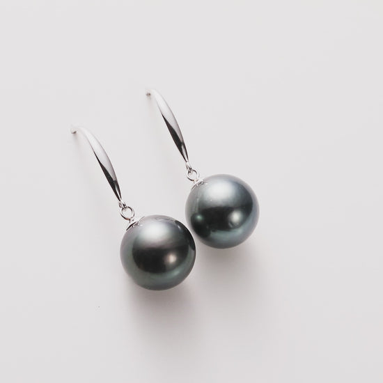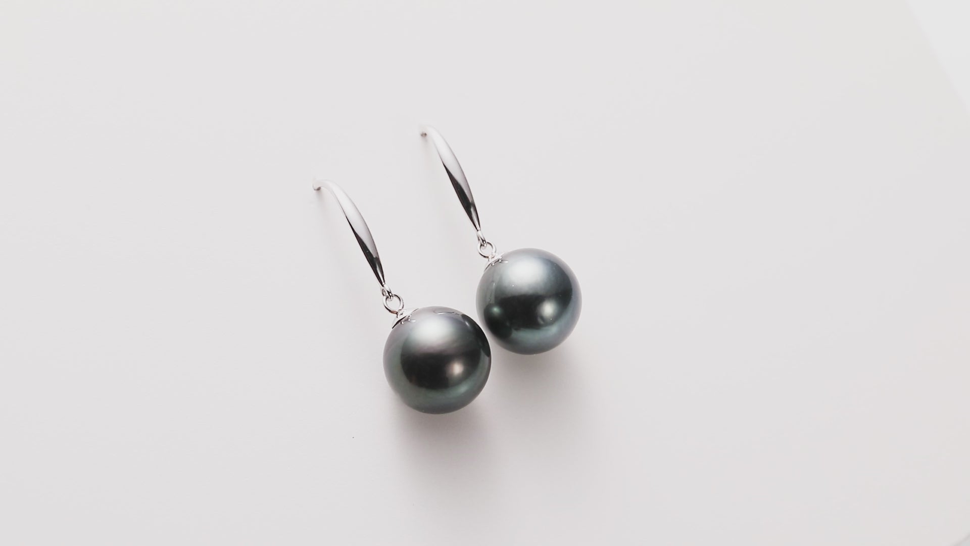 The pair of hook dangle earrings crafted in 18K white gold and hand-set with 8-11mm black Tahitian pearls. Each pearl has been hand-selected for its even shape and lustre, beautifully reflecting the light to enhance your natural beauty.