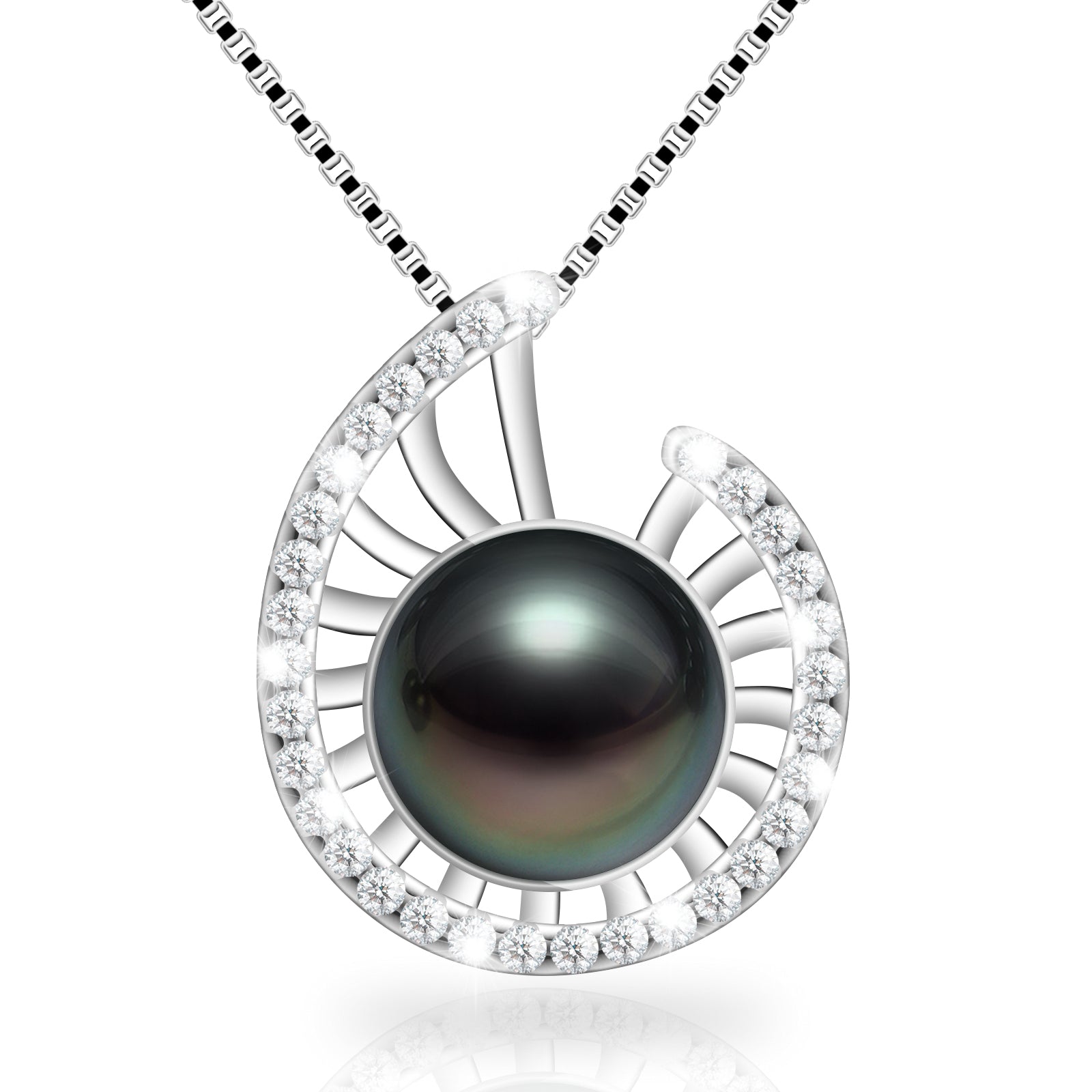 Lucky Conch Tahitian Black Pearl with Moissanite Pendant Necklace, 9-10MM AAAA Pearl Gifts for Women Wife Wedding Birthday Anniversary Valentines