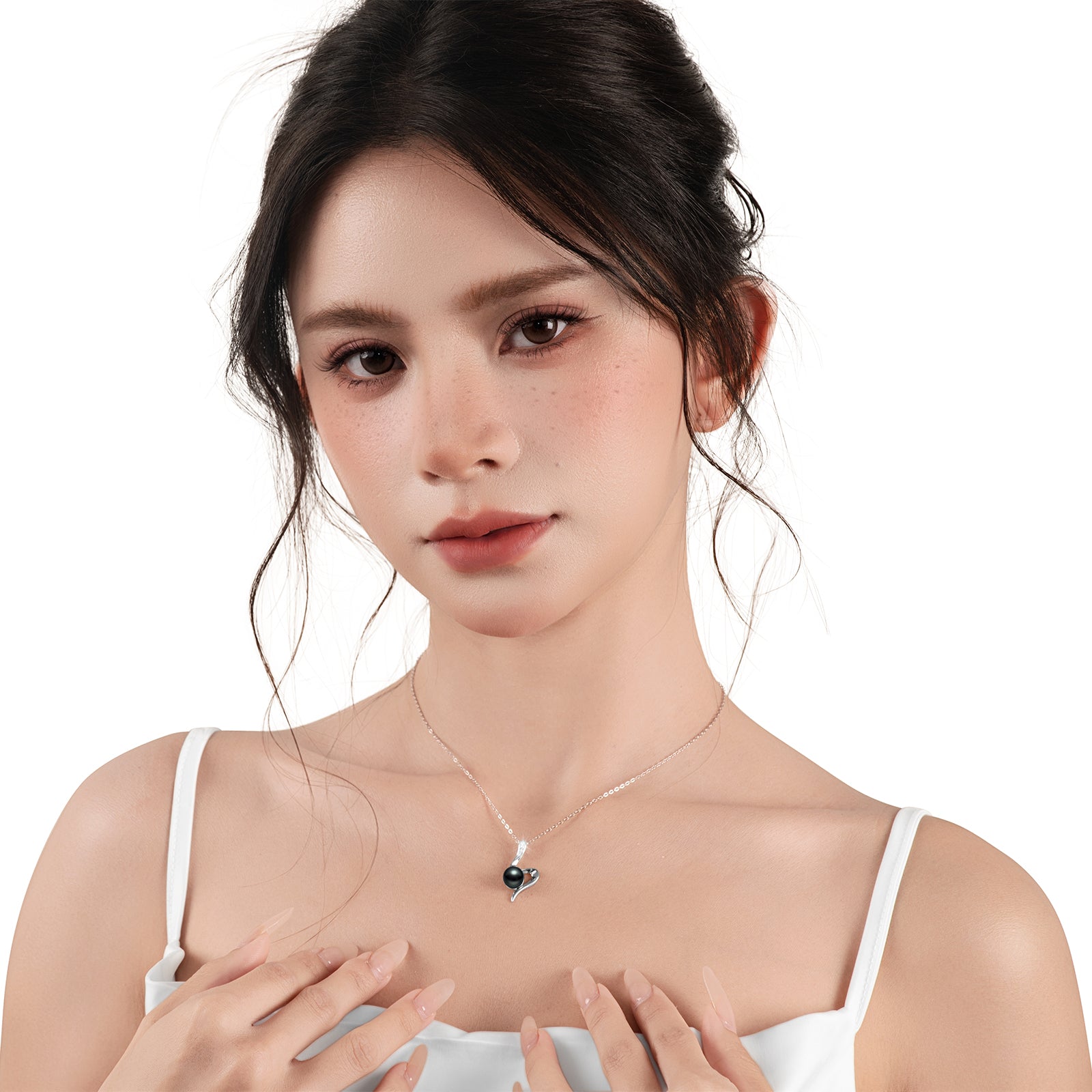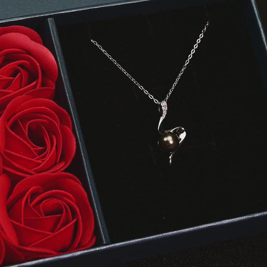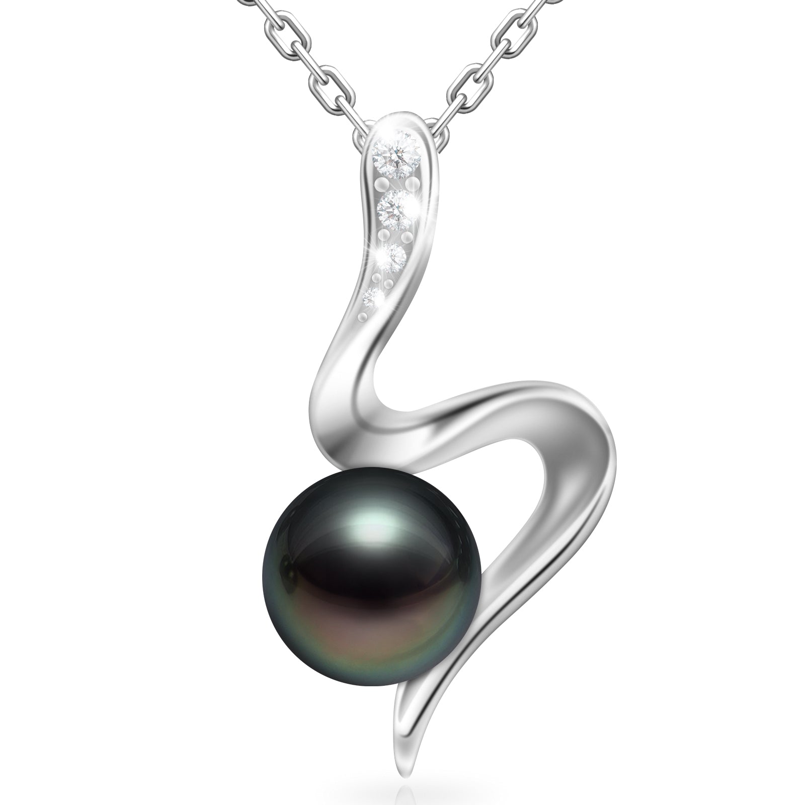 Tahitian Black Pearl for Women Dancing Lovers Pendant Necklace, 7-8MM AAAA Round Pearls jewelry 18K White Gold Plated 925 Sterling Silver Necklace for Anniversary Birthday Valentines Gifts