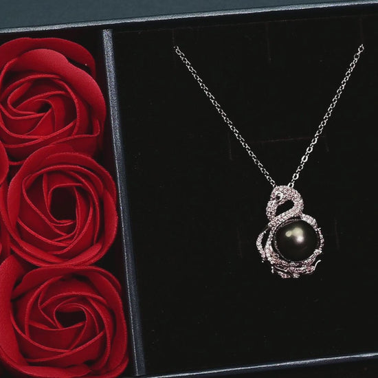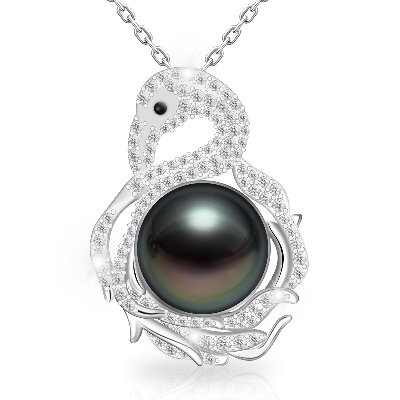 - This white swan pendant combines the handpicked natural tahitian AAAA black pearl with the graceful elegance and luxury of the moissanite, for an eye-catching Jewelry accessory.